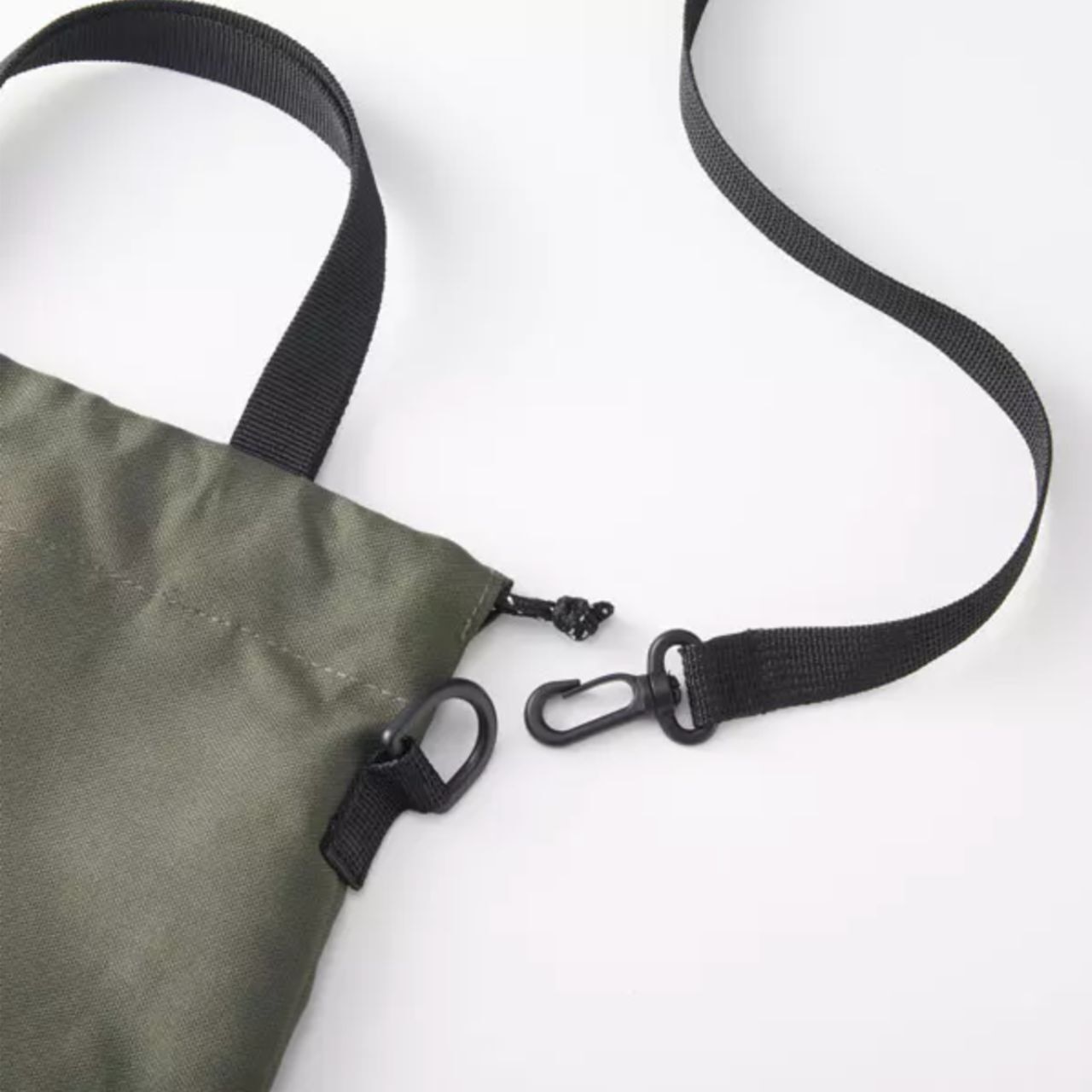取り外し可能なショルダーストラップが付いた、TRUSS(トラス)のリサイクルポリエステル100%使用の撥水ミニトートバッグです。